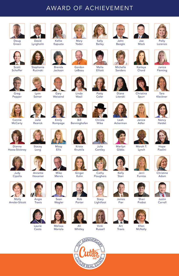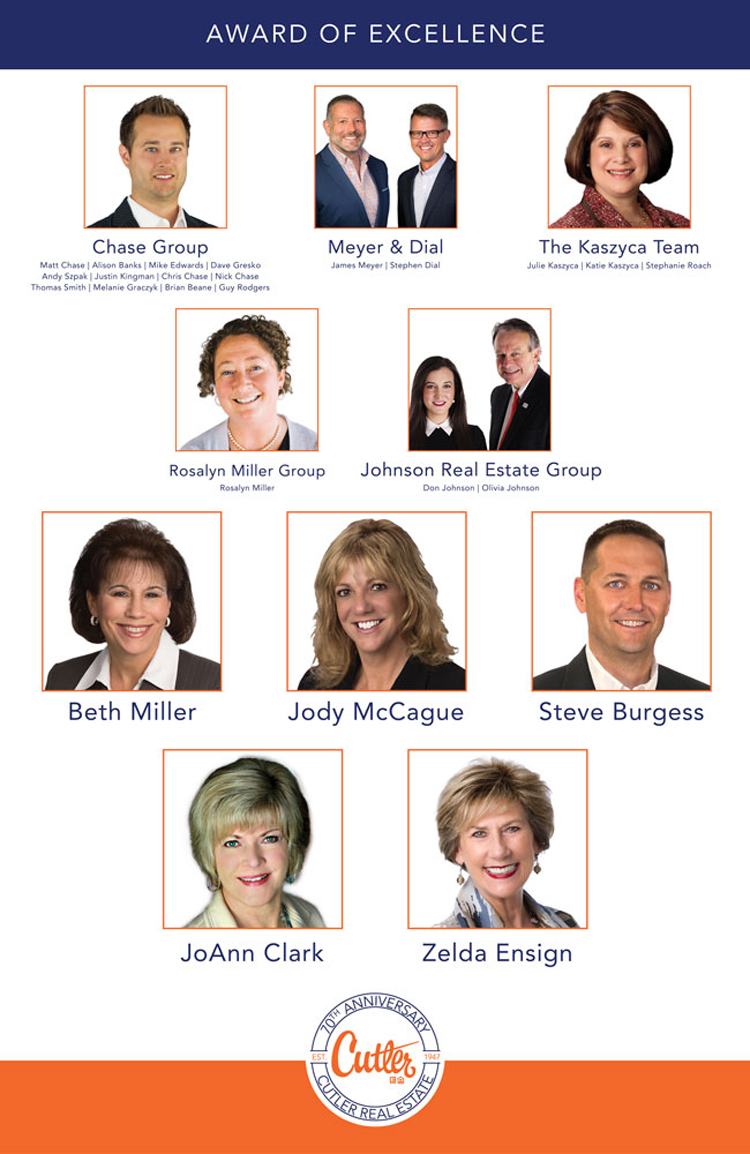 Without further ado, let's give a warm congratulations to the following agents, whose dedication and hard work have helped make Cutler Real Estate what it is today.