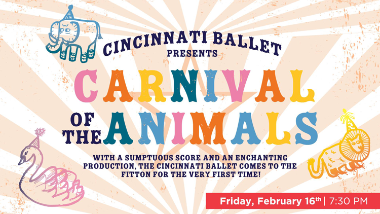 The Cincinnati Ballet will perform at the Fitton Center for the very first time for this month's Fitton Family Friday. Come experience a humorous and enchanting production with all of your favorite animals, performed by some of the area's best up-and-coming dancers.