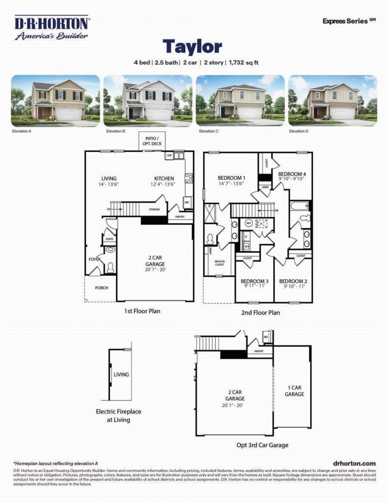 Visit the Taylor at Ashburn Woods! This home offers four bedrooms, two and a half bathrooms, and a two-car garage in 1732 sq ft. It features a dining room and a chef-inspired kitchen with lots of cabinet space and a large pantry. The kitchen opens onto a casual dining area and spacious living room. A powder room is also on the main level. The expansive second-level Owner's suite features a luxurious bathroom with a walk-in shower, double vanities, and a large walk-in closet. The second level also features 3 more bedrooms, another full bathroom, as well as the laundry room.