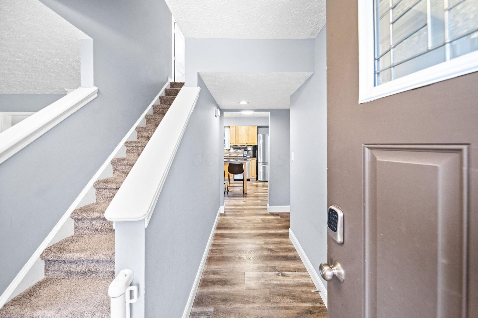 Welcome home! This beautifully updated property features stylish luxury vinyl plank flooring throughout the main level and a stunning kitchen complete with granite countertops, tile backsplash, stainless steel appliances, a large island, and a spacious pantry. The inviting family room opens directly to the backyard, creating the perfect space for both everyday living and entertaining. Step outside to a generously sized fenced yard with a stamped concrete patio and storage shed--ideal for summer gatherings and outdoor relaxation. Upstairs, the owner's suite offers a private retreat with a full bath featuring heated floors. Two additional bedrooms provide ample space for family, guests, or a home office. The finished lower level adds even more versatility with a rec room, dedicated workspace, laundry area, and extra storage. Additional highlights include triple-pane windows, an electric vehicle charging system, Ring doorbell, a new roof (2024), and a sump pump (2026). Conveniently located near shopping, dining, and everyday amenities, this home is part of the desirable Worthington School District with the added benefit of Columbus taxes!