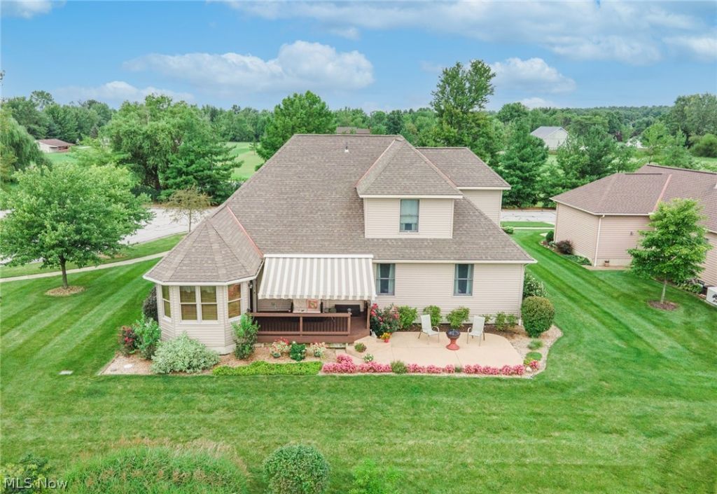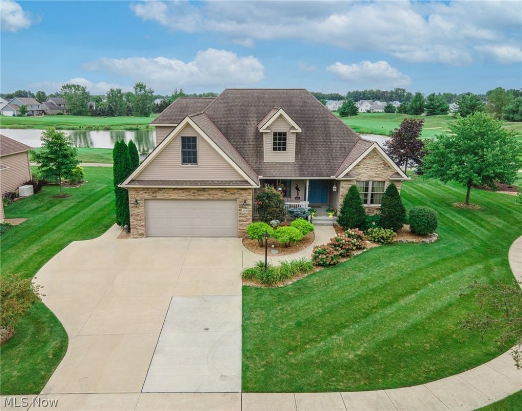 This quality built Maranatha Custom Cape Cod style Home showcases a rare opportunity to enjoy luxury living in one of Lagrange's premier, sought after golf course communities, while offered at an affordable price. It wont be hard to understand what makes this home so special inside and out once you have viewed it. A panoramic view of the prestigious Grey Hawk at Durham Ridge golf course can be seen from the back yard. Positioned nearest the 14th hole with scenic views of the manicured fairway, pond and sand dunes. The impressive view makes it feel like a private resort. The interior was conveniently designed to offer the functionality of one floor living that includes a spacious 1st floor Master Bdrm with a double Tray ceiling, a walk-in closet and an en-suite with two separate sinks/vanities, a garden tub & a step in shower. The 1st floor laundry rm has a stationary tub, cabinets & a folding counter. A cathedral ceiling w/a flat ridge runs through the formal dining, kitchen & morning rooms. The two tiered brkfst bar connects to the spacious galley kitchn with ample amts of maple cabinets (with open top display areas, perfect for decorative accents) & lots of counterspace. The SS appliances can stay too. The Morning rm is one of the most captivating spaces in the home with the hex shaped room, and wall of windows overlooking the golf course, and has a sliding patio door to access the rear deck w/an electric awning, and lge textured concrete patio. A soaring cathedral ceiling and cozy frplce accents the Great rm which is conveniently open to the kitchen & morning rooms. Two addtn'l decent size bdrm's are upstairs, one with a walk-in closet, and both share the full bath. You can walk right in to the unfnsh'd attic area which offers potential for any future bonus rm needed. The bsmt is dry, and plumbed for a full bath if you should decide to finish it as well. The restaurant in Grey Hawk (The Nest) has a traditional food menu & frequently hosts live entertainment too.