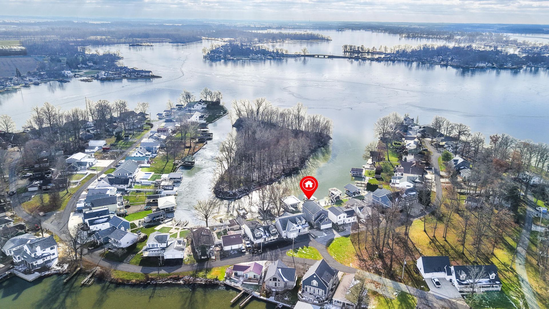 Beautiful 3 bed/2.5 bath waterfront home on Long Island featuring a covered double dock with electric lifts and party deck! Updates within the last 4 years include new furnace, AC, hot water tank, guest bath, electric panel, garage openers, tile, carpet, blinds, and interior paint. The owners suite features a new supplemental heat/AC unit, en suite bathroom with new oversized walk-in shower, 2 walk-in closets, and a private deck with retractable awning and stunning lake views. The main level features an open floor plan with a large living room, gas fireplace, and spacious kitchen with stainless steel appliances. The 3-season room is a wonderful space to relax and watch the boats float by. Youll love it here!